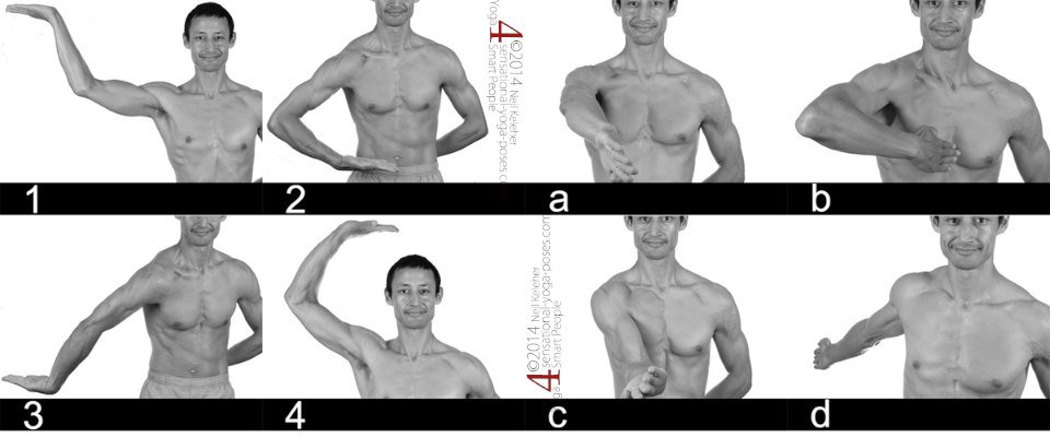 While just moving in and out of the basic positions can be an exercise in and of itself, a slightly more challenging dance of shiva shoulder exercise is moving between the positions.
