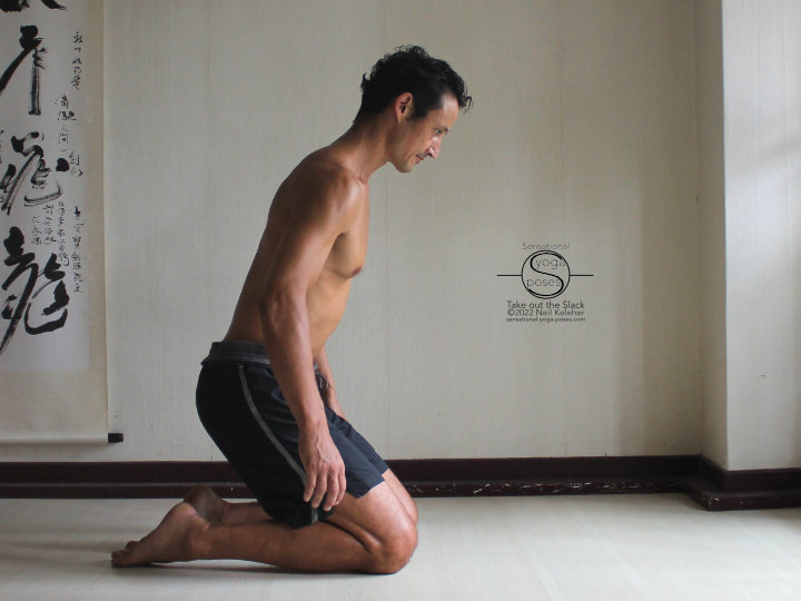 To prepare for crow pose, and to get used to the idea of using other parts of our body as pressure sensors, we can practice shifting our weight while kneeling.