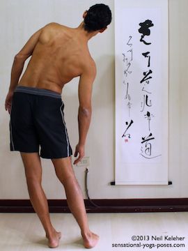 Another way to stretch the side of the waist is while doing a standing forward bend.