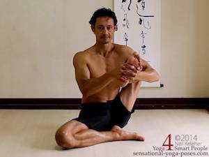 This can happen by varying the downward pressure of the knee and/or foot, by reaching one side or the other side of the ribcage away from the pelvis, and even by adjusting the way that you are using your breathing muscles.