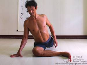 The trick to make this pose more comfortable and more effective is to press the knee down.